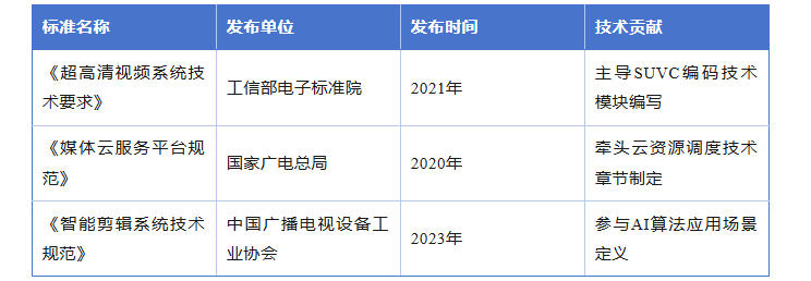 索贝作为“国家超高清视频创新中心”成员单位,参与制定多项行业标准,具体如下: