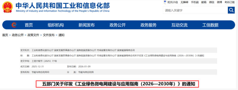 《工业绿色微电网建设与应用指南(2026—2030年)》印发