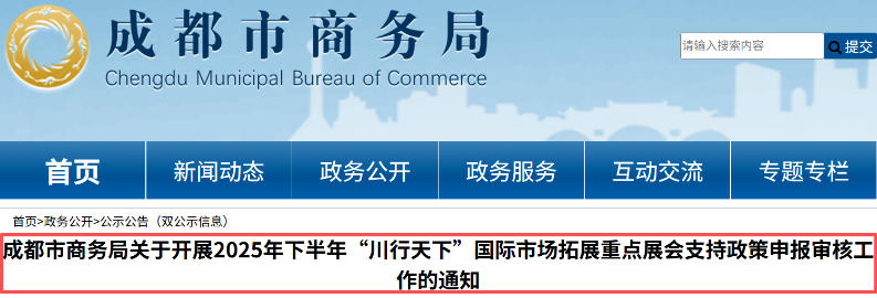 2025年下半年“川行天下”国际市场拓展重点展会支持政策申报