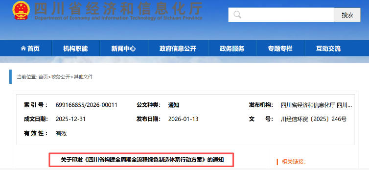 07、《四川省构建全周期全流程绿色制造体系行动方案》印发