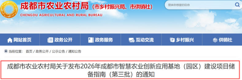 2026年成都市智慧农业创新应用基地(园区)建设项目储备(第三批)