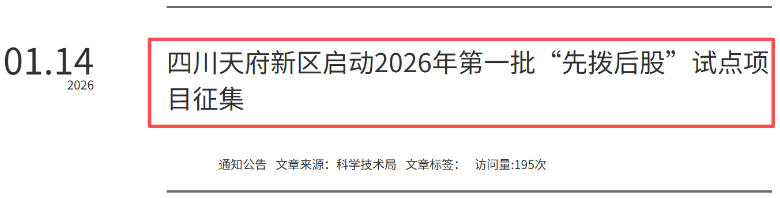 11、2026年第一批“先拨后股”试点项目征集(天府新区)