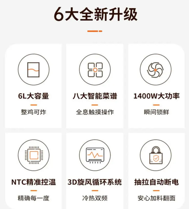大火力高温热风快速循环,散布整个机腔加速享炸脆化食物,美味快人一步