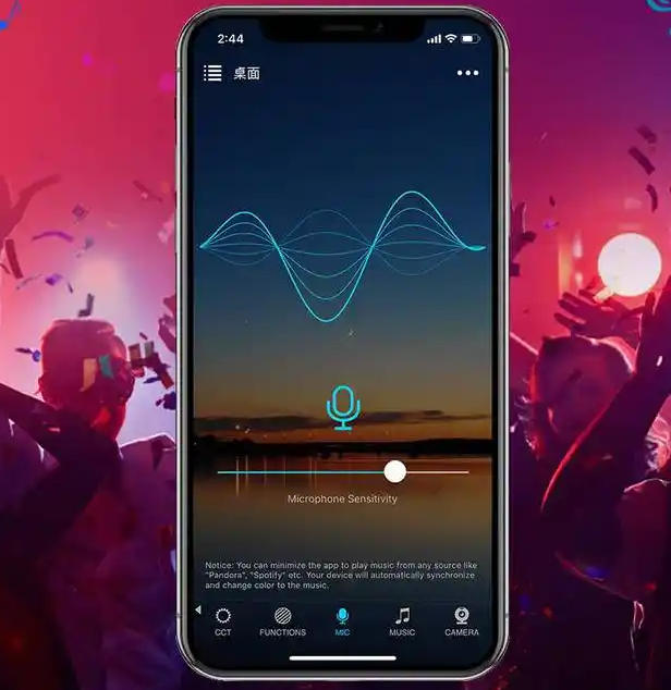 灯光随音乐节奏变化,斑斓幻彩,听音乐更有感觉,开party更有氛围:同步音乐节奏,享受美妙的夜晚