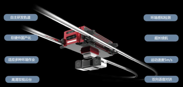 大容量锂电池设计,在轨运行距离长。分布式充电系统,有效保障巡检设备电力充足。轨道悬挂式运行有效节省地面空间,定位精准,测控误差士1MM。可视范围广,360度全景取景 图像清晰 HDR1080P 低噪点 高清画质视频质量。全视角自动巡检,可按照自定义巡检方案,对指定位置定时巡检。移动红外热成像测温,实时监测物体温度,提前预警。对当前环境的温度、湿度、气体探测,可探测多达十几种气体。