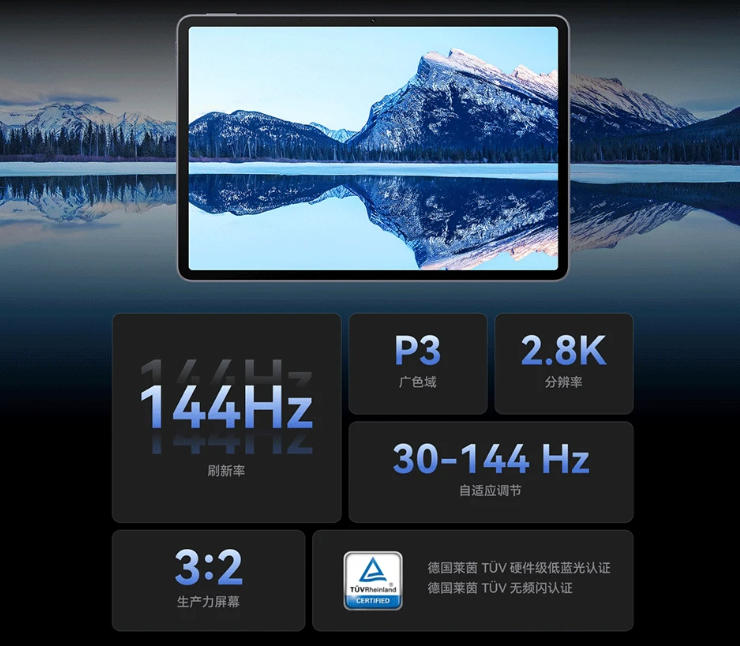 华为首款 144 Hz 高剧全面屏"商用平板,响应灵敏,流畅非凡。11.5 英寸全面屏,2.8K 高清显示。更具 30-144 Hz 剧新率。自适应调节,世间万象,鲜活呈现。