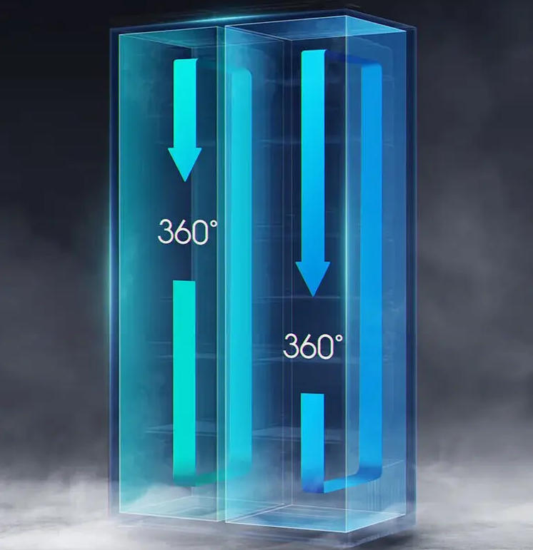 360°循环送风制冷内部不结霜,免凿霜烦扰食物不粘连,保持原鲜口感