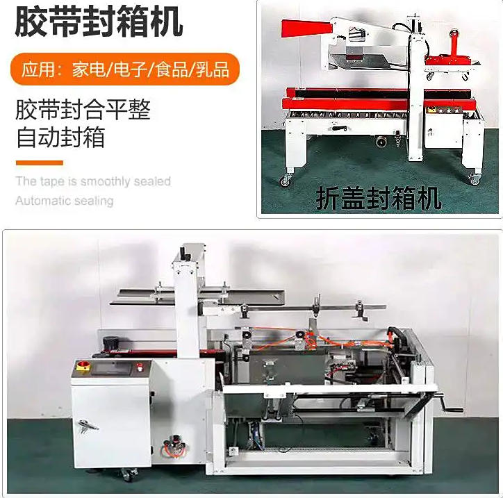 胶带封箱机是指用即贴胶带封纸箱封口,经济快速、容易调整,可一次完成上下封箱动作,也可以采用印字胶带,更可提高产品形象,是自动化包装企业的选择。封箱机的关键部件是驱动电机。电机功率越大越好。