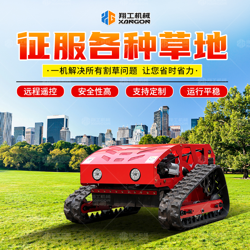 履带割草机小型多功能遥控自走式汽油打草机 山东翔工