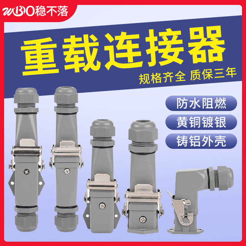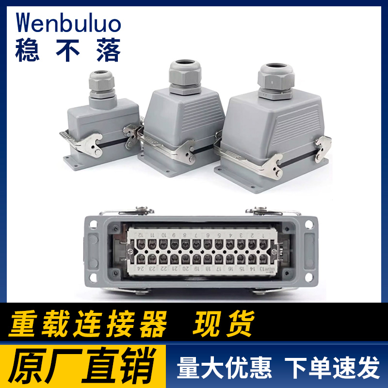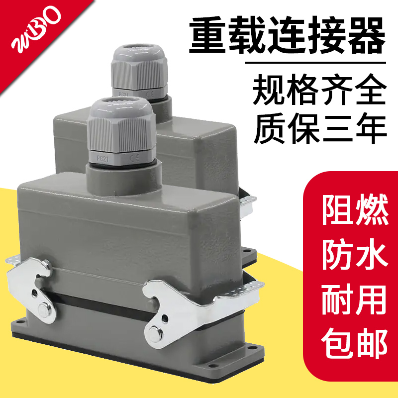 HE矩形重载连接器6孔-10-16-24芯32针48位热流道防水航空插头 铜
