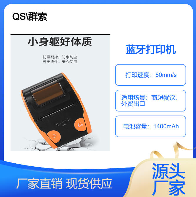 QS蓝牙迷你小票打印机微信小程序票据不干胶条码二维码热敏标签机 9V1.5A