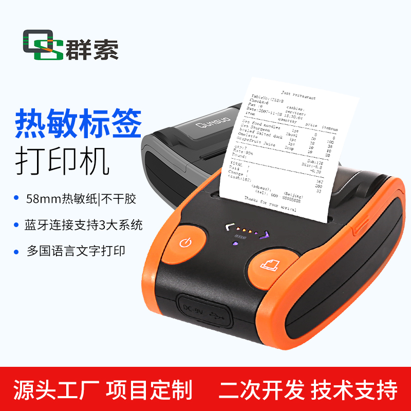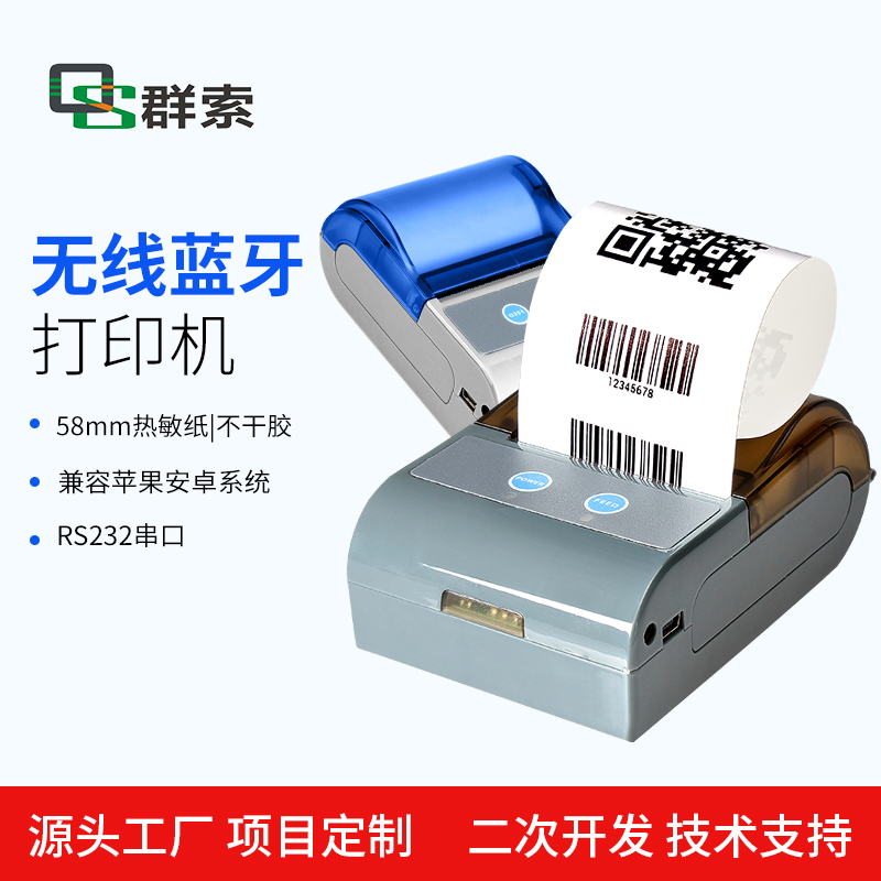 便携式蓝牙热敏标签打印机 RS232串口票据文字条码二维码打印 9V1.5A