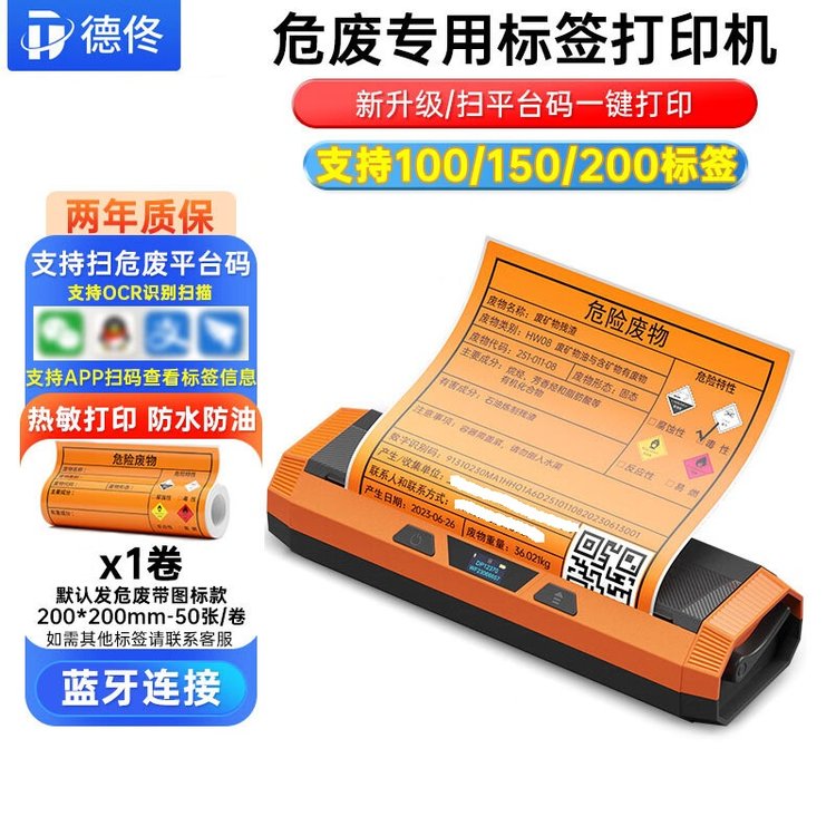德佟DP12370宽幅危废标签打印机 配套软件自动生成二维码 TFT彩屏